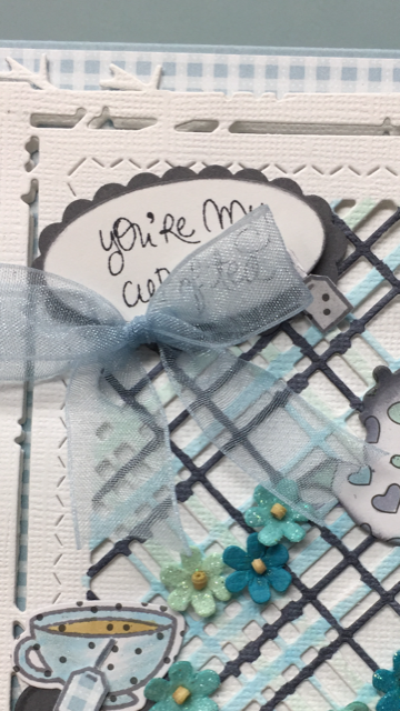 I used some Mellow Moss ink for the heart on the cup, fussy cut it out and popped it up.
